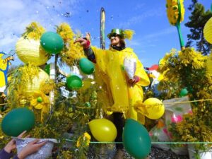 Les rues de Saint-Trojan-les-Bains se parent de magnifiques décorations florales et accueillent un spectaculaire défilé de chars fleuris au mimosa, accompagné de :
